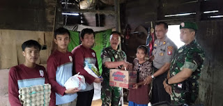 Sampit - MkNews-Dalam momentum memperingati hut ke74 TNI tahun 2019, Koramil 1015 - 09/Baamang dan Polsek Baamang bersinergi menggelar bhakti sosial berupa anjangsana ke kediaman warga yang kurang mampu dan memberikan bantuan pada Minggu (06/10).